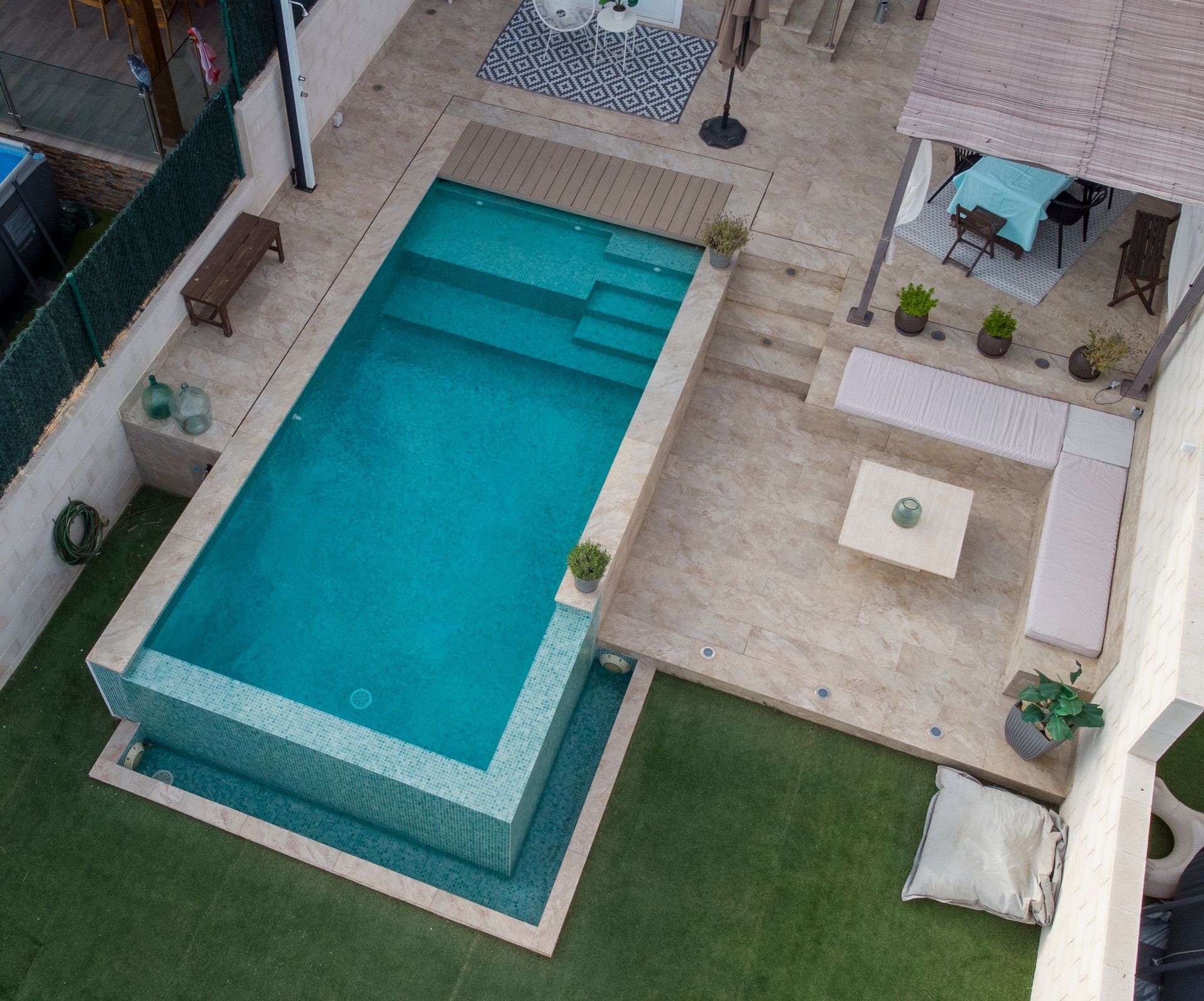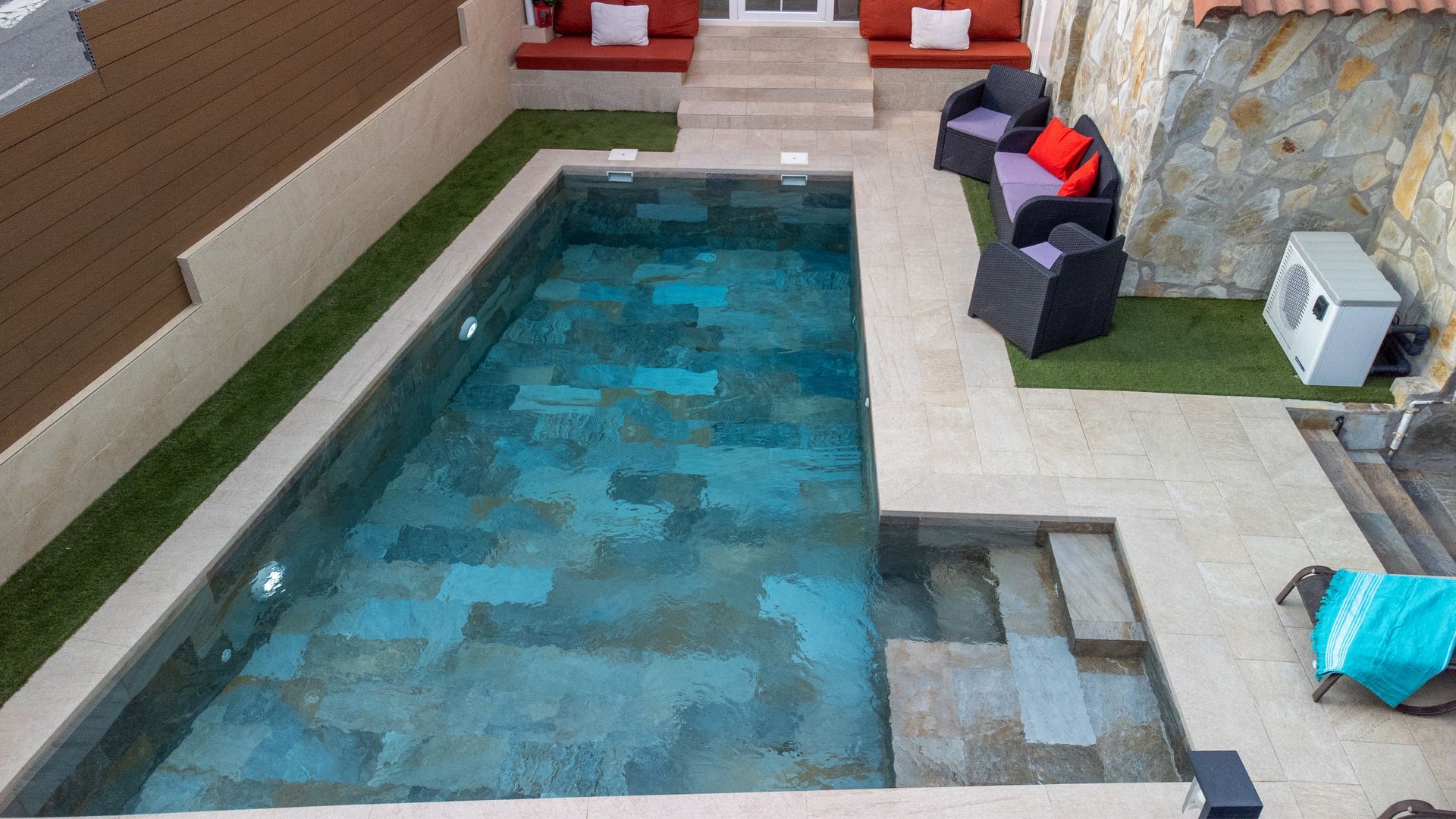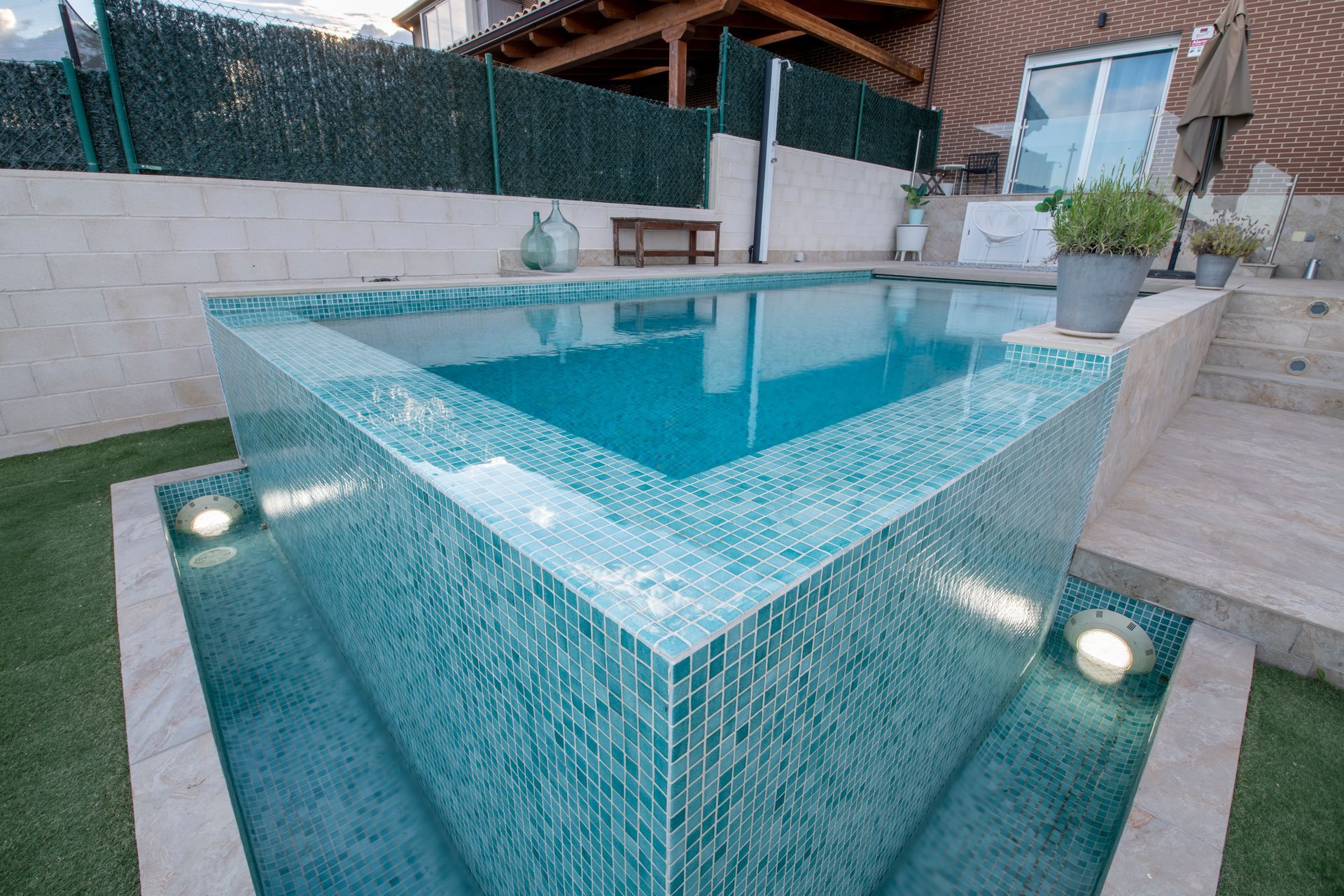 Hemos de añadir que en el günitado o günite de las paredes y el suelo son construidos a la vez, por lo que el fraguado del vaso se realiza de manera uniforme no existiendo por lo tanto empalmes ni juntas.
