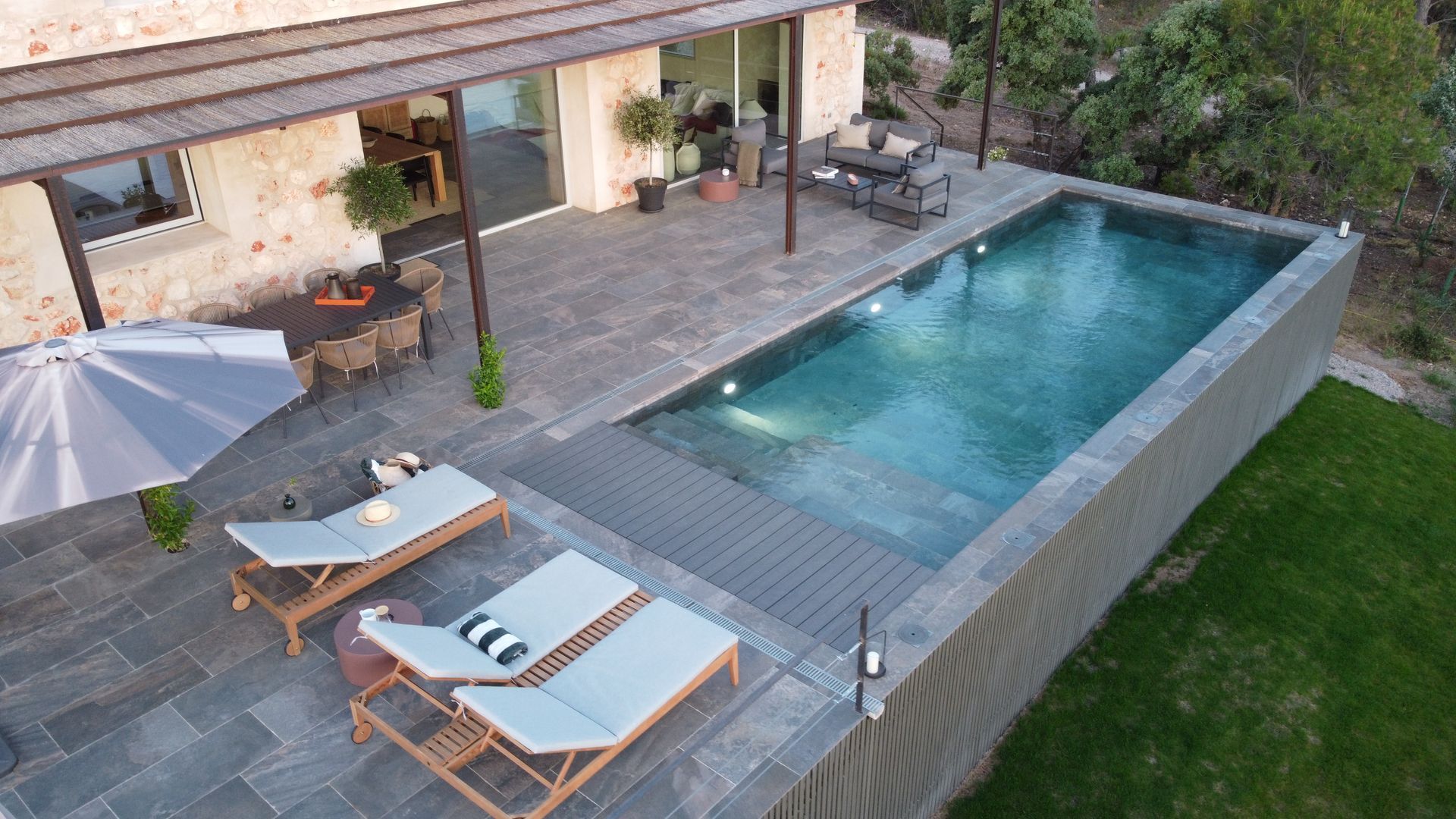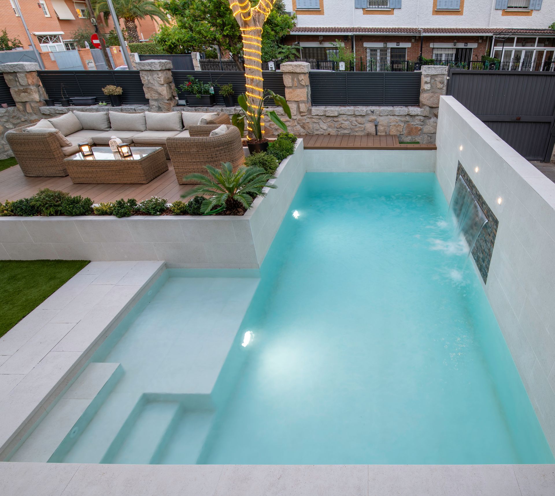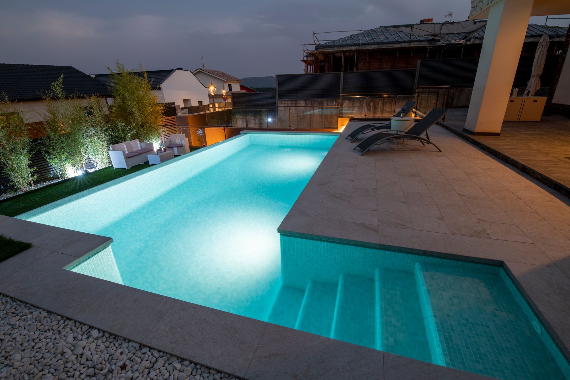 Hemos de añadir que en el günitado o günite de las paredes y el suelo son construidos a la vez, por lo que el fraguado del vaso se realiza de manera uniforme no existiendo por lo tanto empalmes ni juntas.